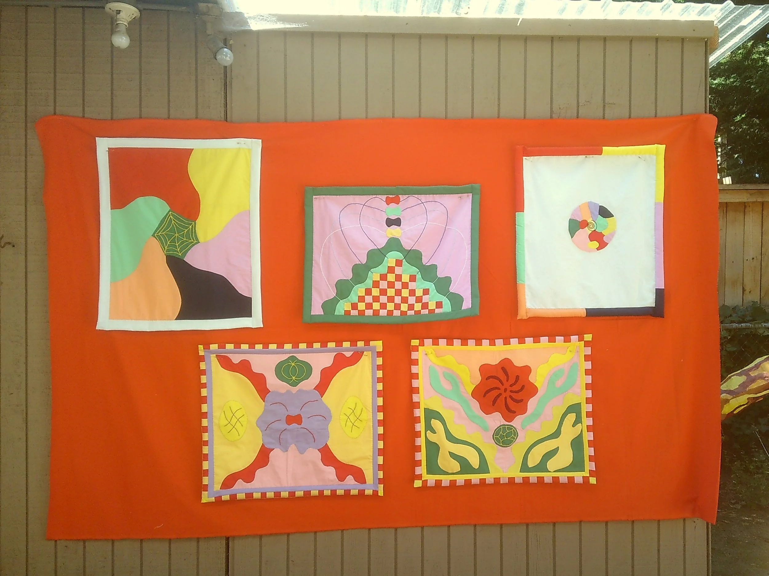 loaf mass. 2024. series of 5 machine and hand sewn quilts with patchwork, applique and embroidery. 24”x36”.