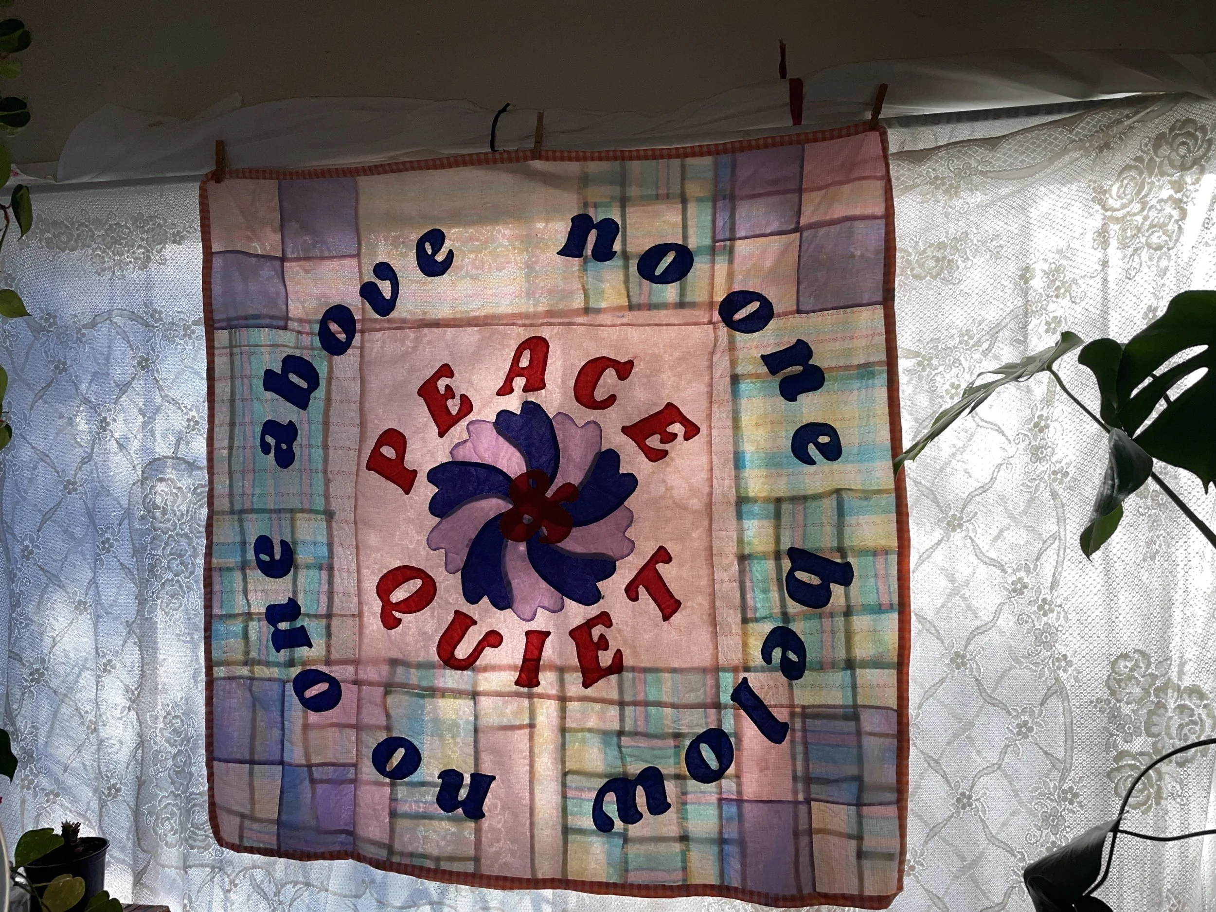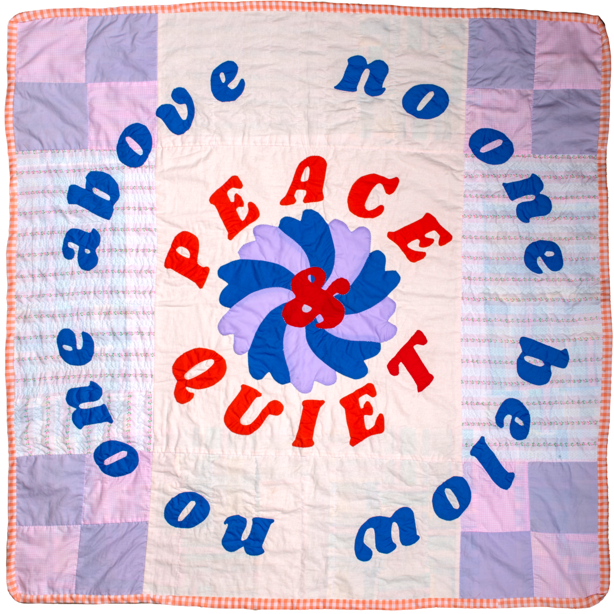 peace & quiet. 2023. 54”x54”. hand appliqued and quilted, machine pieced.