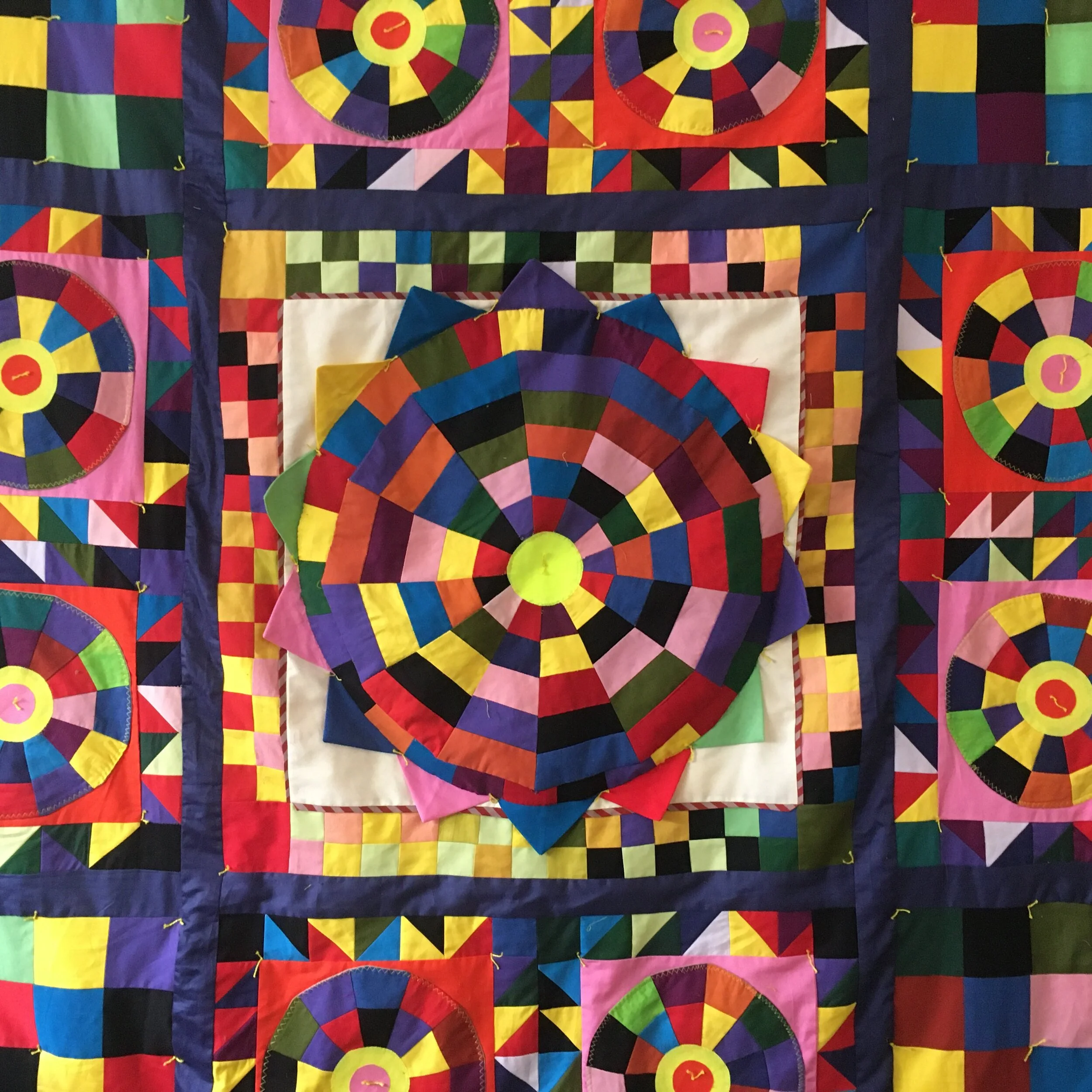 2021. 60”x80” machine- and hand-pieced patchwork, hand tied.